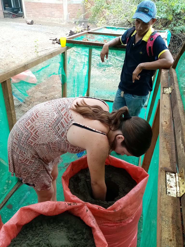We had to cover our hatchery as it was just too much rain for the nests to handle. The high moisture and the compaction of the sand had already affected some of the nests in May – we had learned our lesson and put a roof over the hatchery. The thing is that the drainage in those sand bags is not the same as in the ground, so bag hatcheries like ours are more susceptible to heavy rain.