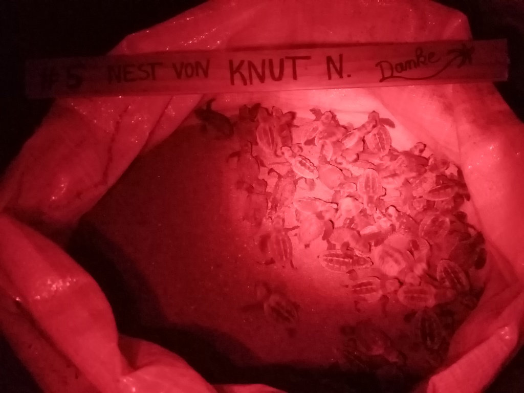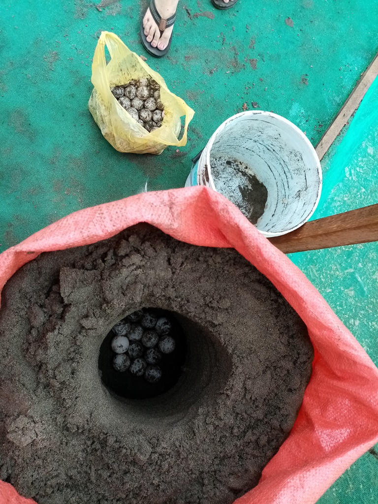 I have no idea how many nests are being laid on the entire beach as we still only see a tiny fraction of them protected. This year, we have been working with 4 chosen egg collectors. Whenever they come across a nest on the beach, they call us or bring it directly to our house where the hatchery is located. But most nests are still being found by other people from the community and are being sold to the market. It’s nothing to worry about because Hey – we got a lot of potential to grow in the future!