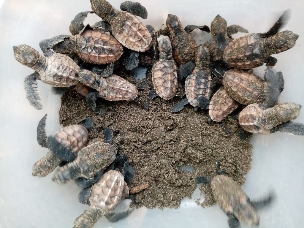 But fortunately we had some spare bags that could be filled with sand and our tiny hatchery was still functional so we relocated the nest successfully. And from there on, it didn’t want to stop.