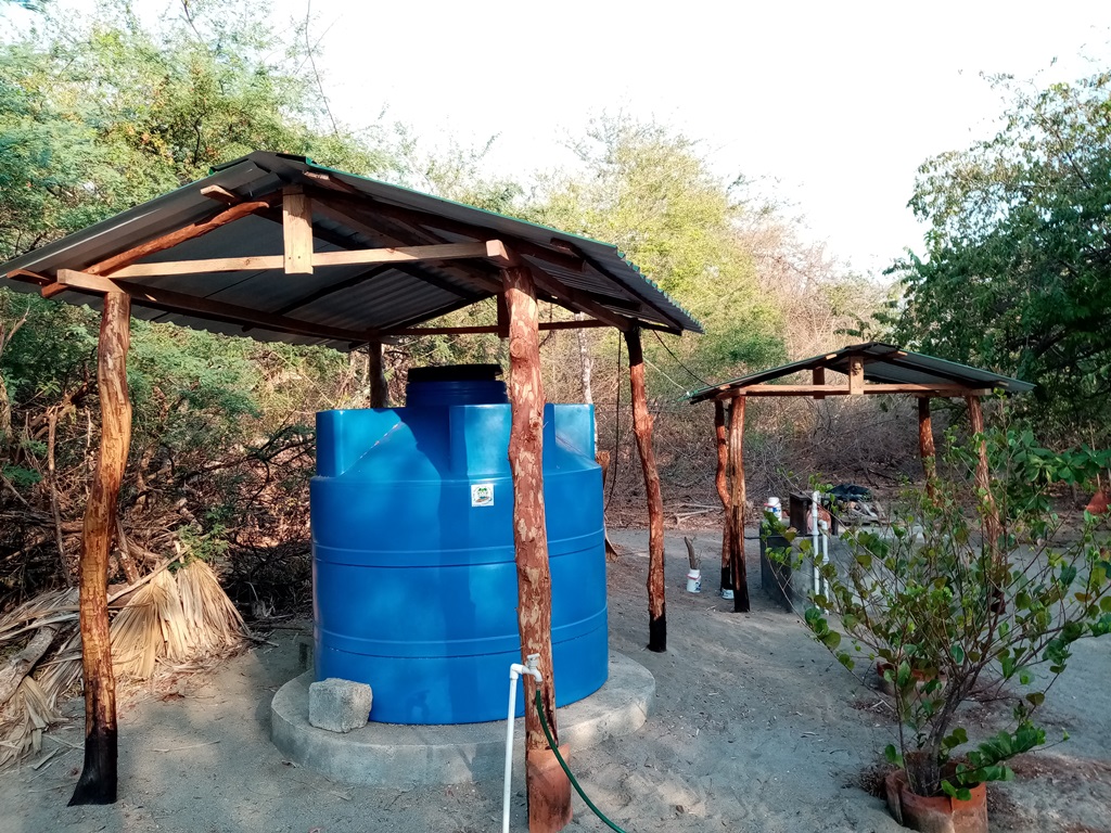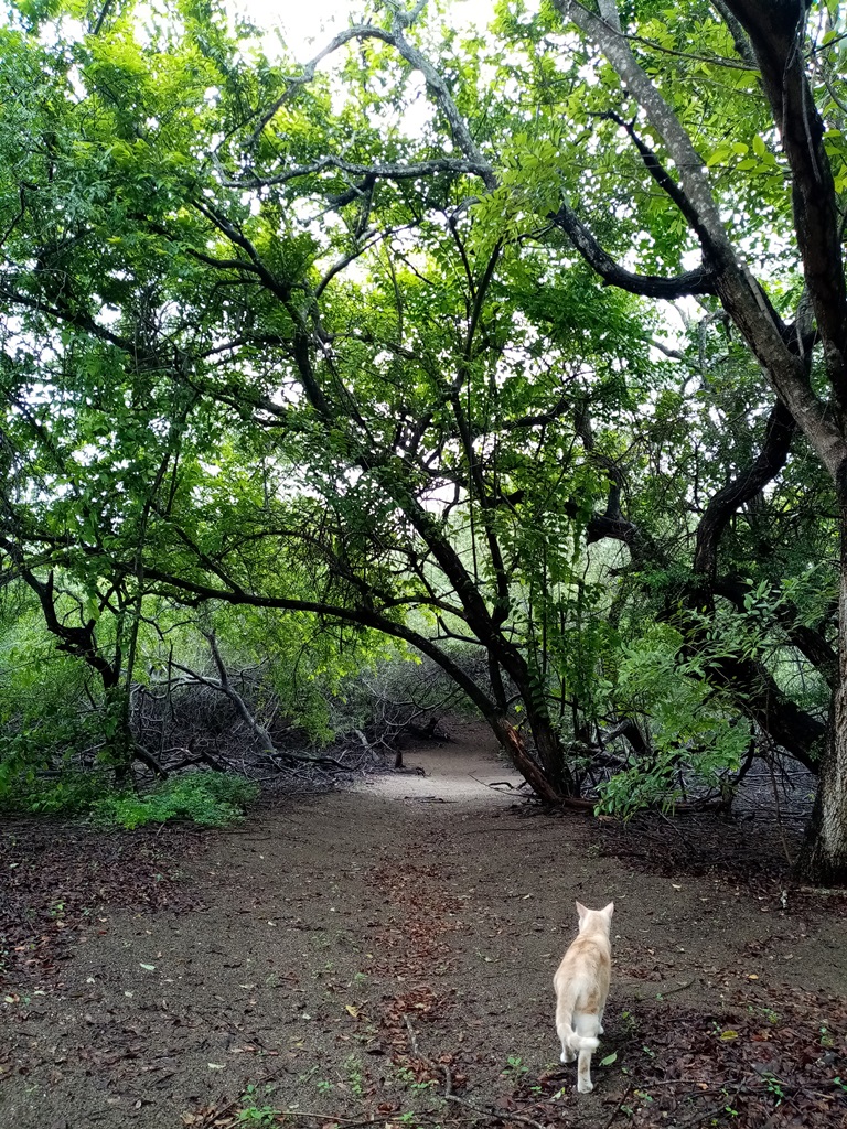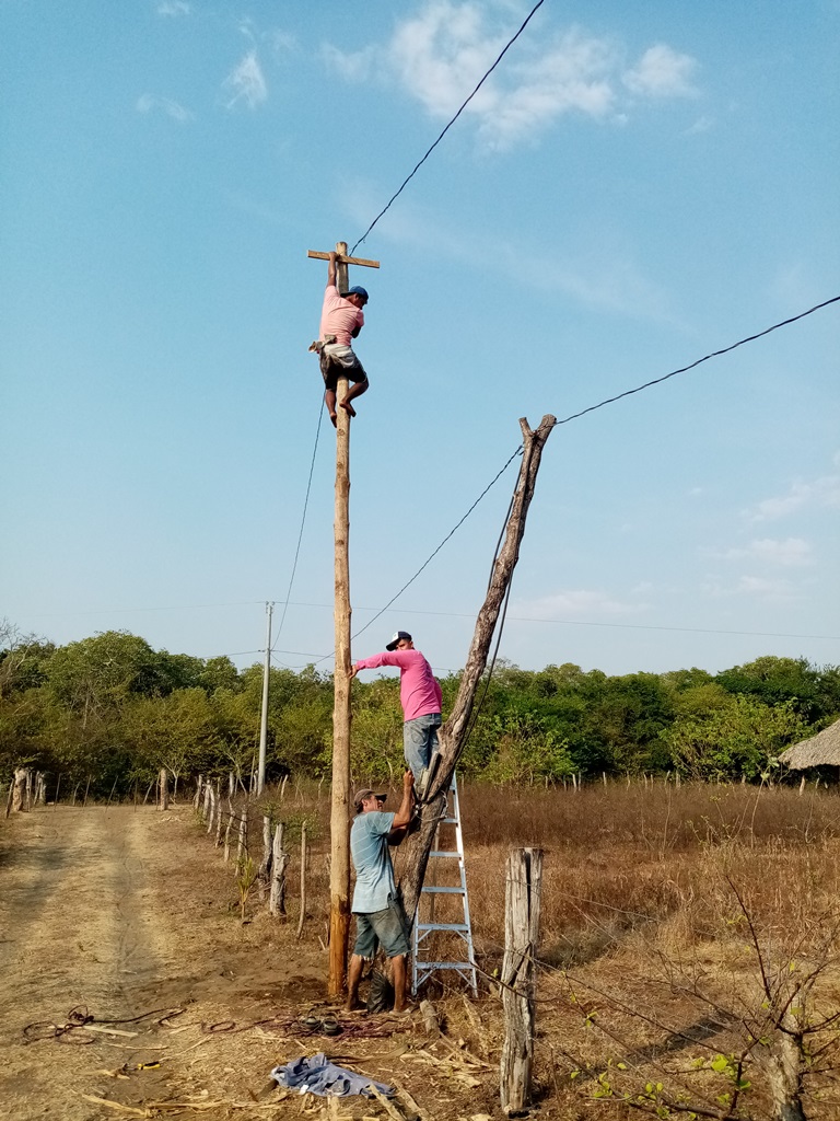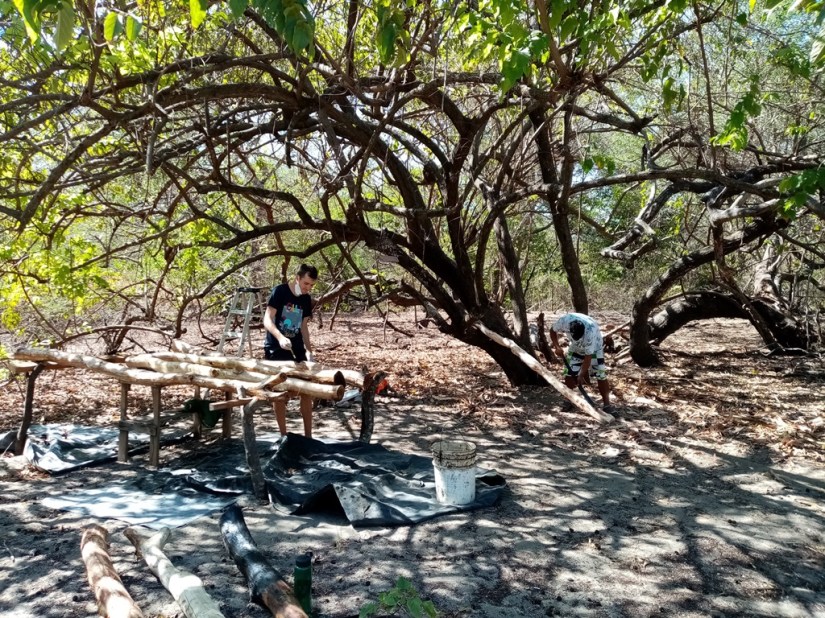 Lennard was of great help to us and definitely left a legacy. As it was the height of the dry season, one very important job was to water our younger trees, every other day, carrying buckets of water around in the early morning hours. Then, he helped Melvin with various tasks that involved maintenance, construction, handicrafts and woodworking. They renewed some important infrastructure on the property and even added a nice little beachfront hangout with some shade and a bench to sit on. Because – you know – we don’t have beach umbrellas and lounge chairs… 🙂 We also renewed our electricity posts along the road which had been due for a while – the old ones were already used by woodpeckers to make their nests!