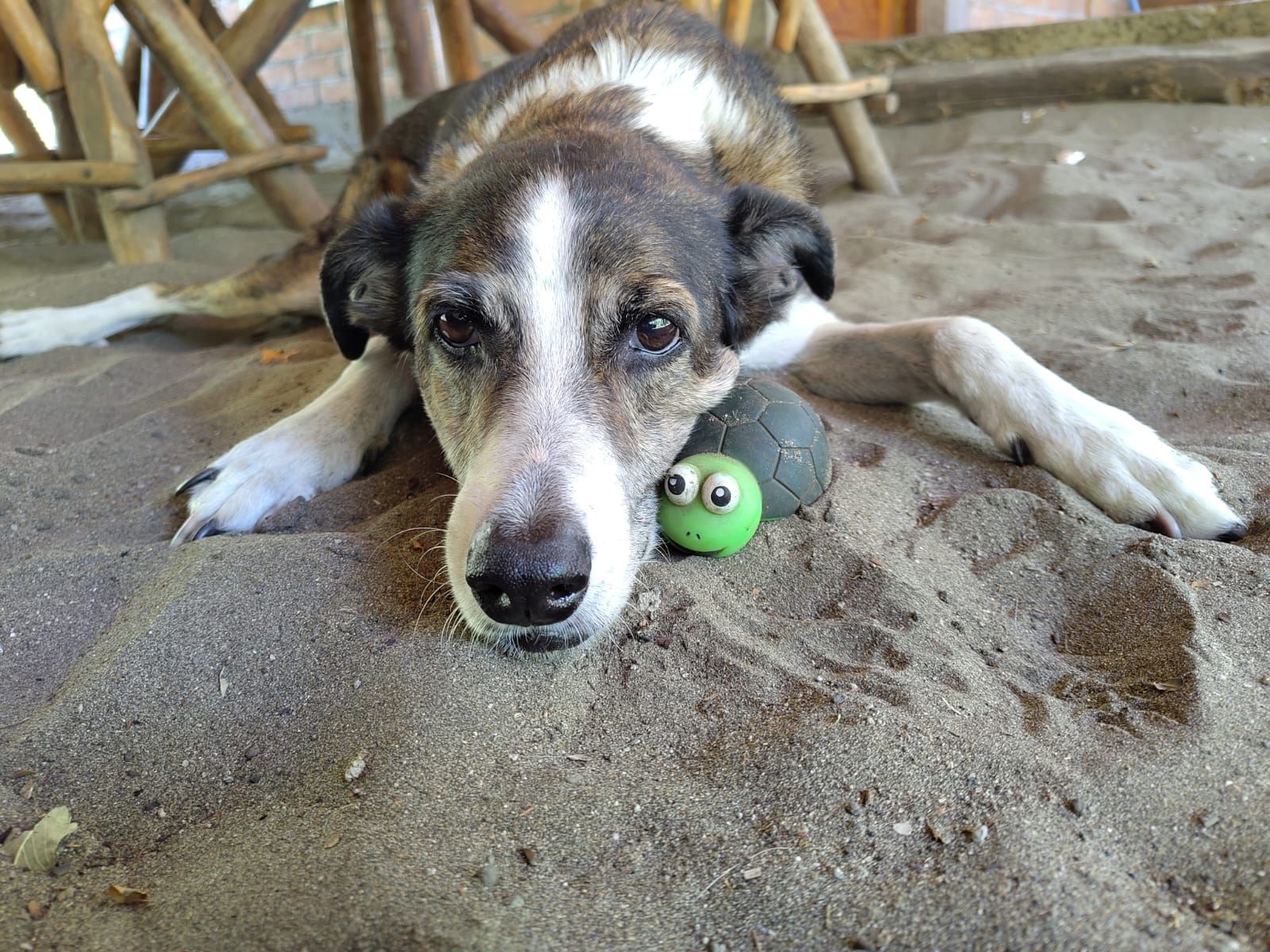 And then of course there’s crazy Gulasch and Grandpa Milo, pictured below with his toy turtle. They are always walking by your side unless they’re deep asleep. They like to chase after motorbikes, horses and birds, they watch over our interns sleeping at the camp site, and they guard the entrance to our property pretty damn well.