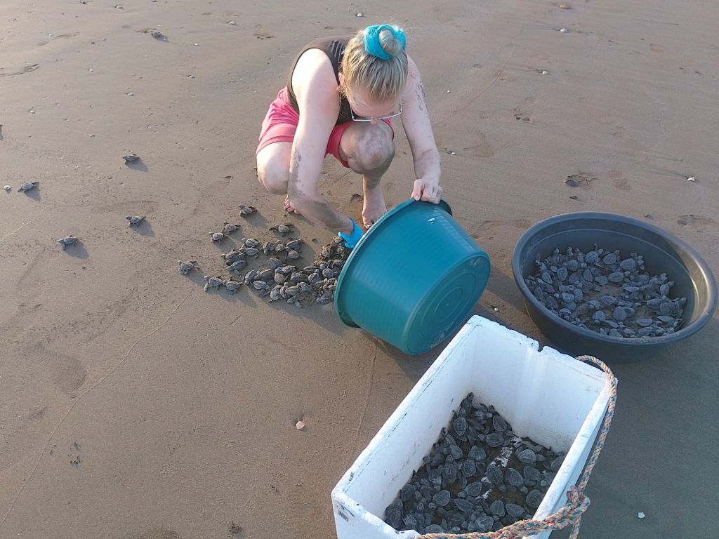 The Hawksbill nests were on the lower average as usual with a 50% success rate, but the Olive Ridleys had a good 80% success rate. The mean value was negatively affected by a few nests that didn’t hatch at all, but the proportion of nests with over 80% and even over 90% was satisfyingly high.