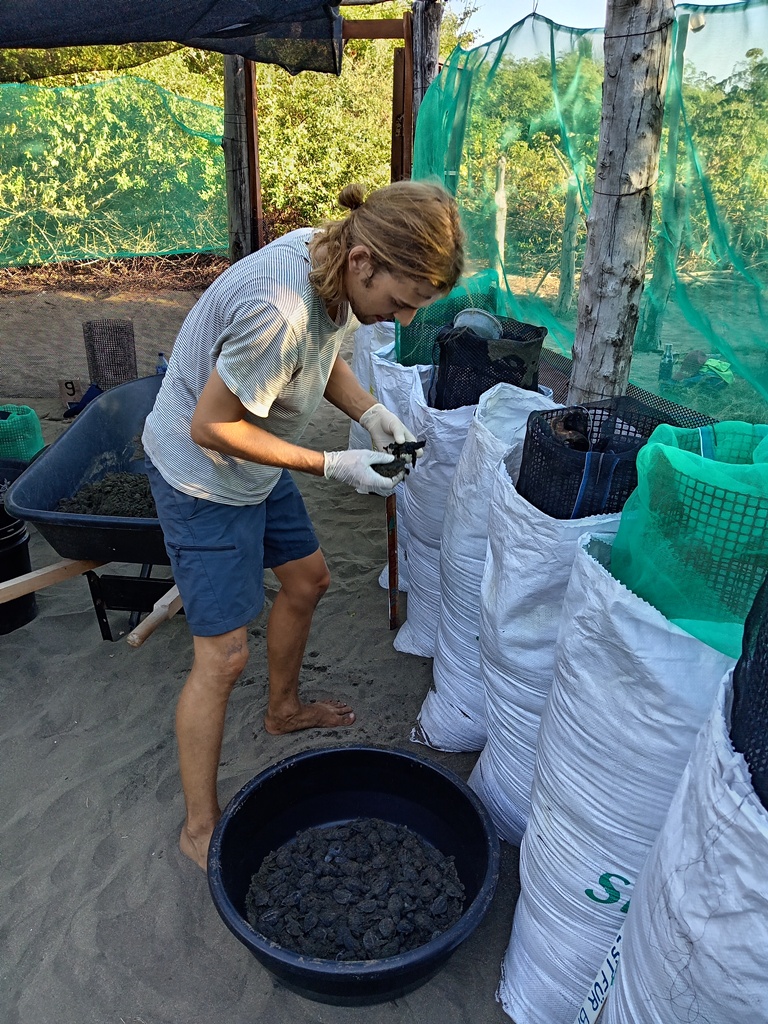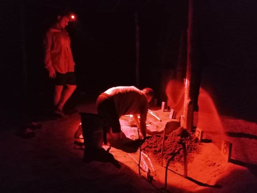 The main tasks in July / August were getting the hatchery ready and filling up new nest spaces with fresh sand. Once the nesting season was at full speed with 2-3 nests coming in each night, we had to dig a looooot of nest spots which would fill most of the afternoons. But as is it our interns’ all-time-favourite-task (*joking*), nobody would ever complain!