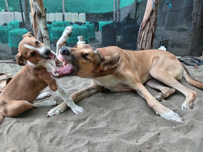 Gulasch needed about a month to get used to that little “rat” that was running around him waggling his tail, and today they are inseperable. Now Gulasch seems to be a grumpy grandpa from time to time because Knödel is challenging and annoying him so much, but most of the time they are playing together and loving each other. What a love story!