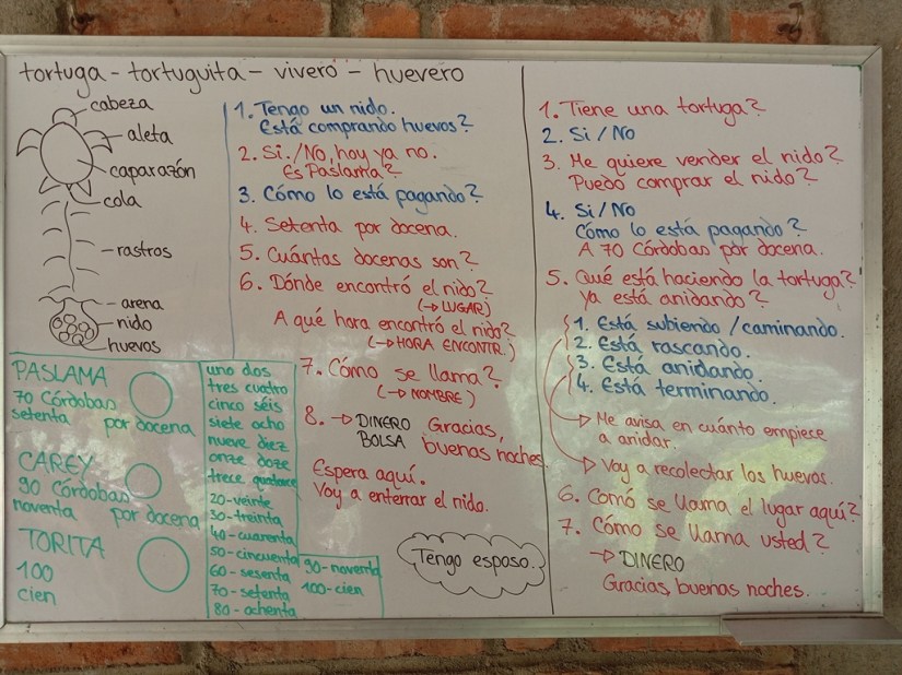 Our best “huevero” Kevin, who sold 29 nests to us, received a gift basket. He would have sold us even more if we hadn’t told him sometimes “no, for today we are full”. What I really appreciated was that he is one of the few guys in this village who does not get mad at us when being turned down at the hatchery and always comes back to check again.