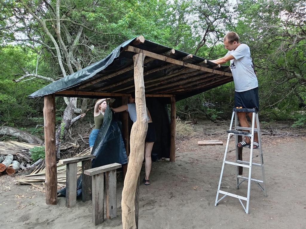 We also kept planting grass and trees on Rio’s pasture and built our brandnew turtle hospital, which is basically just a roof and five tables 😉 So it’s nothing like those sea turtle hospitals you see in developed countries. The idea was to do some good ol’ headstarting on chosen hatchlings which would be deformed, weak or somehow impaired upon their release. Under natural cirumstances they would have died already inside the nest, on the beach or during the first minutes in the water. But we give them a second chance to grow bigger and stronger, and release them after a few months in our care.