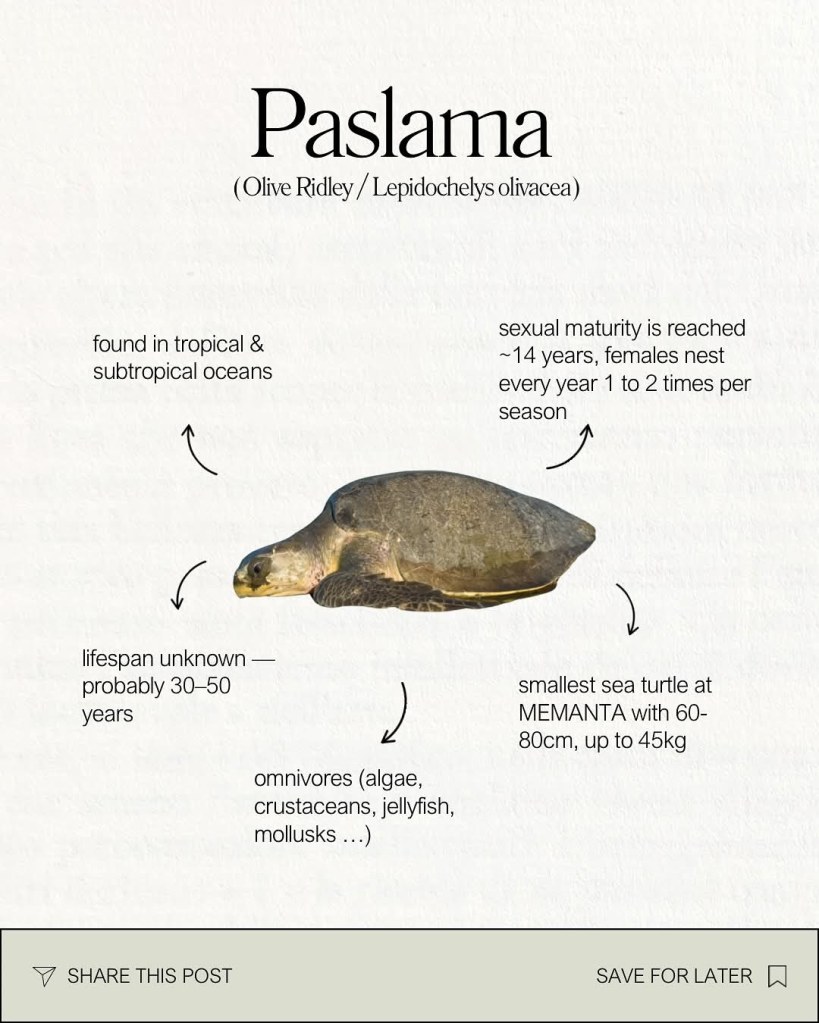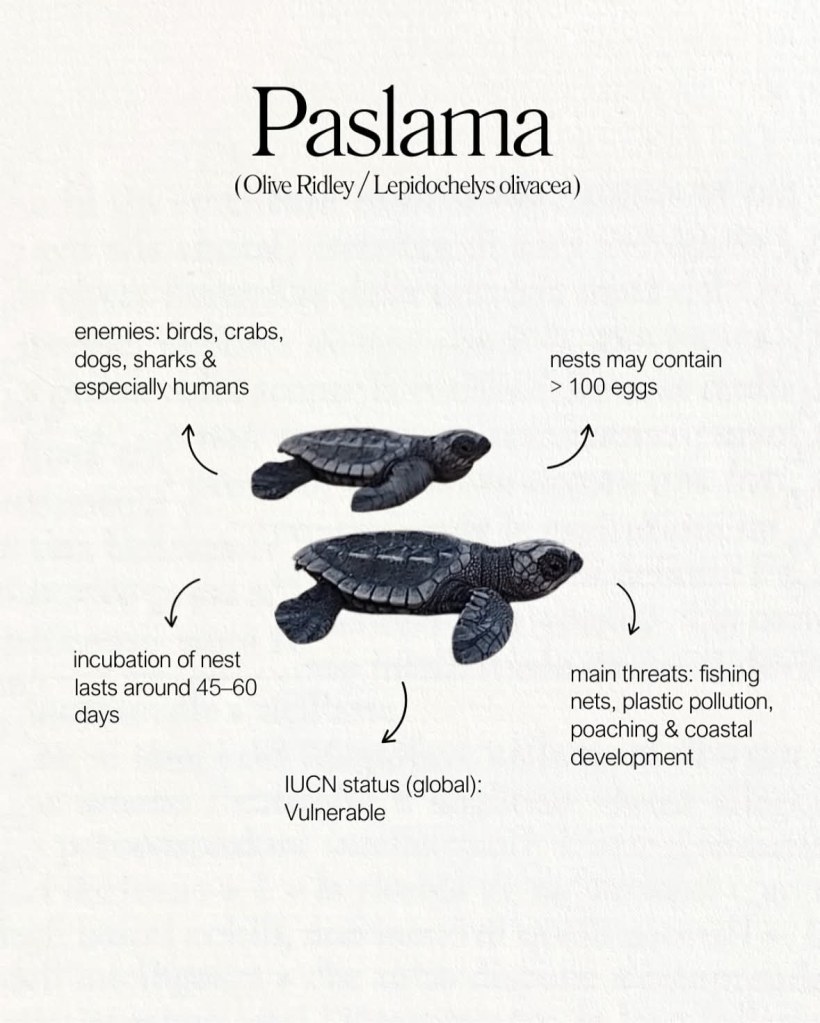 The main species found on Nicaragua’s Pacific Coast is the Olive Ridley Turtle (“Paslama”) and around 90 % of our nests originate from that species! Olive Ridleys are listed as <vulnerable> on a global scale by the IUCN Red List.