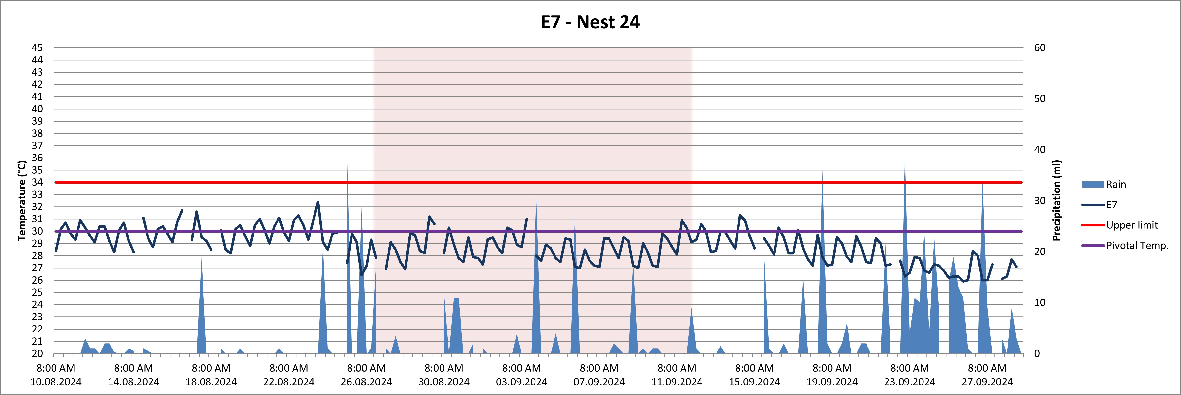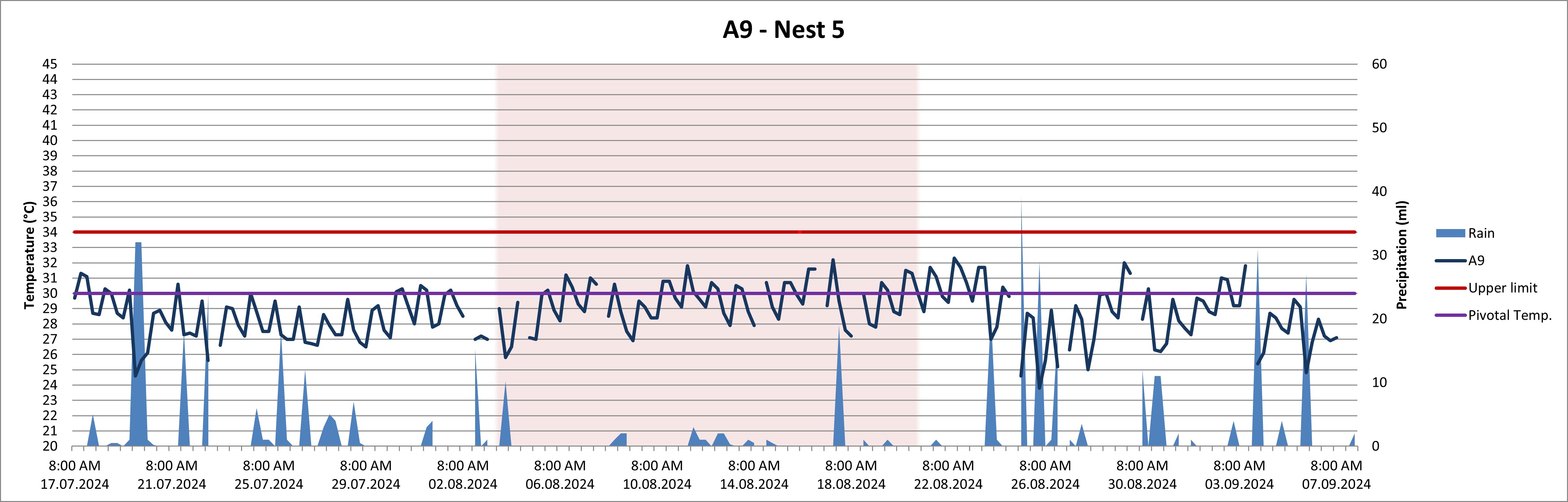 - The red horizontal line marks “danger – it’s getting too hot” (= Upper Limit) and the purple horizontal like marks the perfect temperature for development and a balanced sex ratio (= Pivotal Temperature)