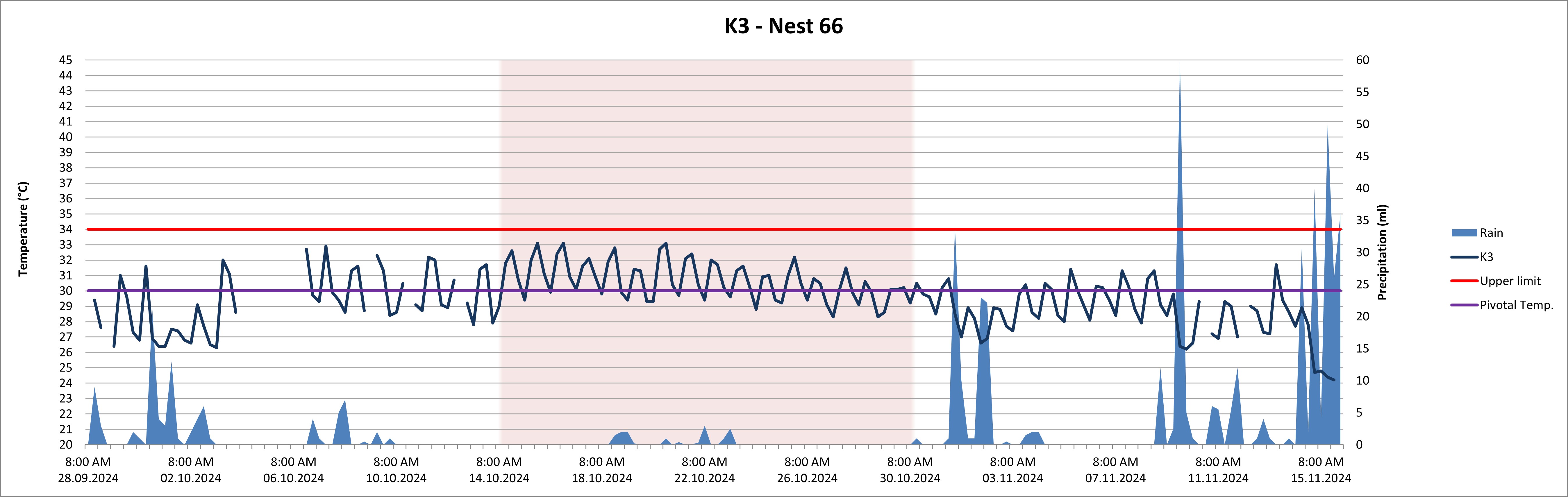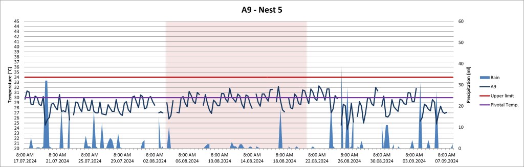 This nest showed female-favouring temperatures, but did never present dangerously hot temperatures even though there was basically no rain during the unusual dry period in October.