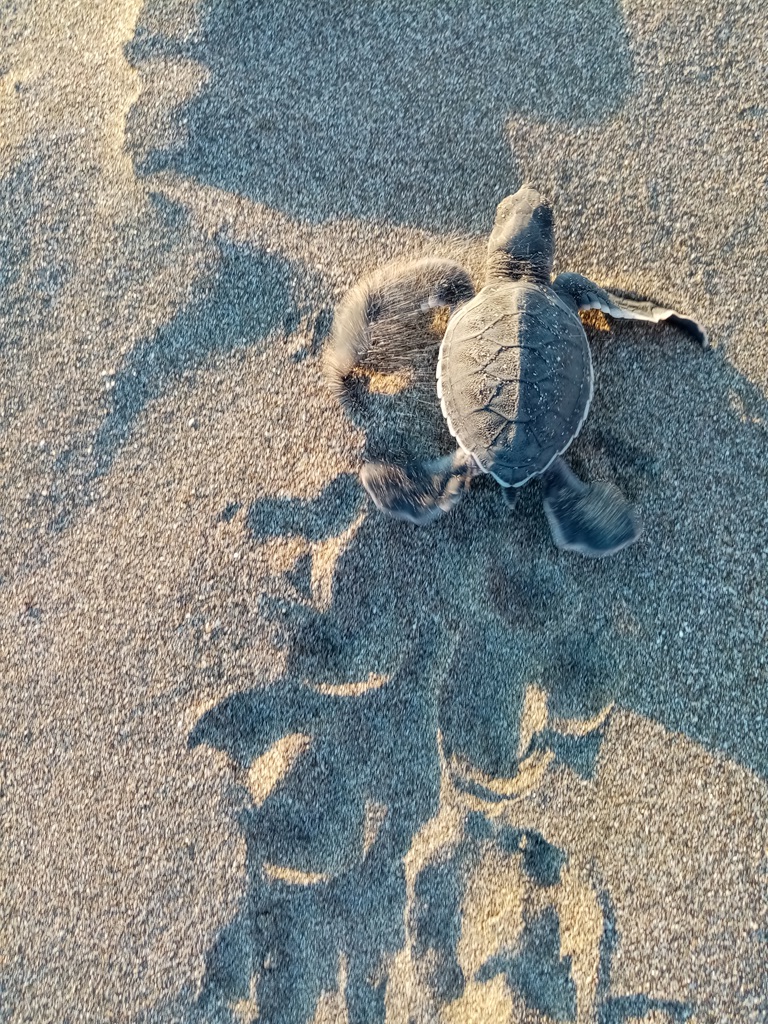 Even though a new year had begun, we still had quite a few nests in the hatchery – both from Olive Ridleys and Green Turtles. Fortunately there were some helping hands around, first the Berg family and then Lennard, a brave soul from northern Germany who decided to do a 3-month internship in the field of geography! Even though Lennard’s focus wasn’t sea turtles, he got trained in nest exhumations and releases. We didn’t go on any more night patrols, but that didn’t stop him from witnessing one legendary nesting event right in front of our property! He saw the turtle dragging herself out of the water, totally unexpected, in the middle of the day, when he was having his midday beach break. What a lucky guy! He immediately called us and we collected the eggs together – it was the last nest of the 2021/2022 season!