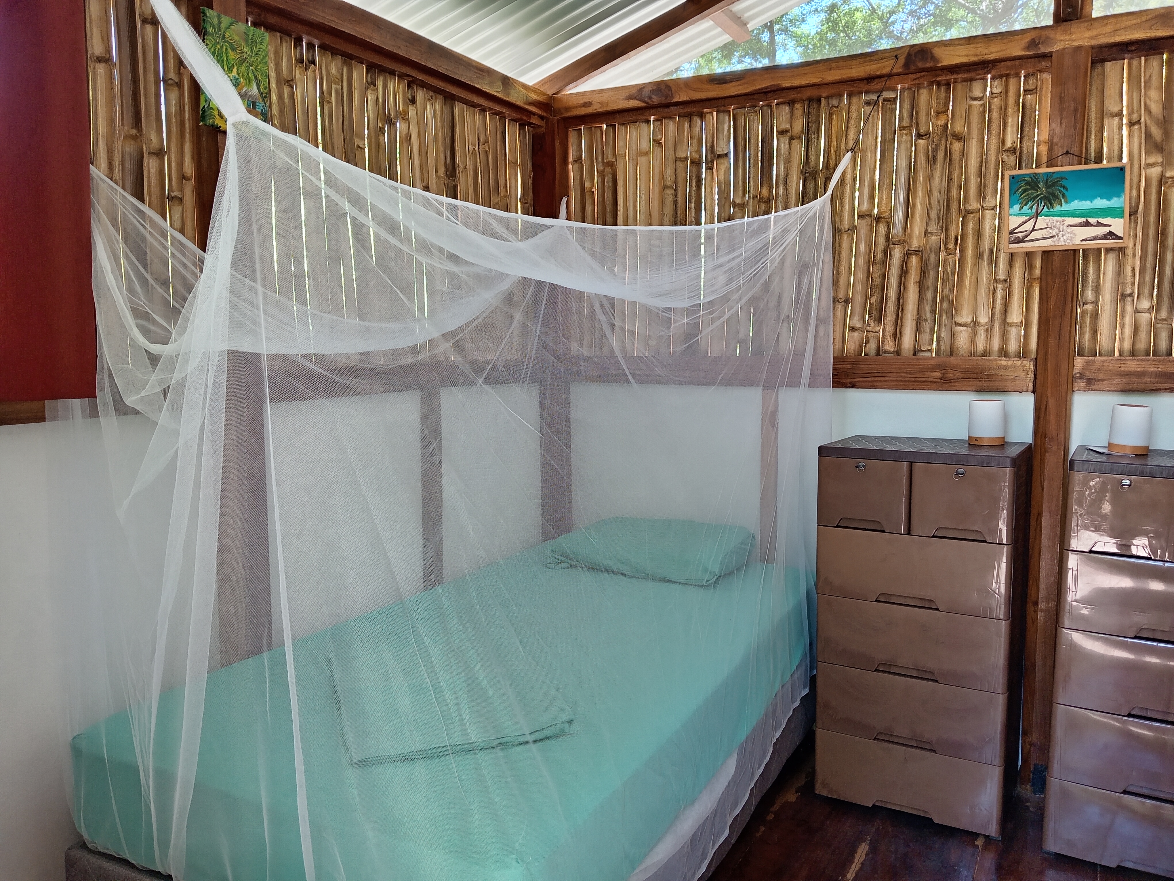 Our cabins have NO electricity. But they are gorgeous anyway, aren’t they? Sleeping spaces are equipped with mosquito nets, cabinets, mini rechargeable fans and solar lamps.