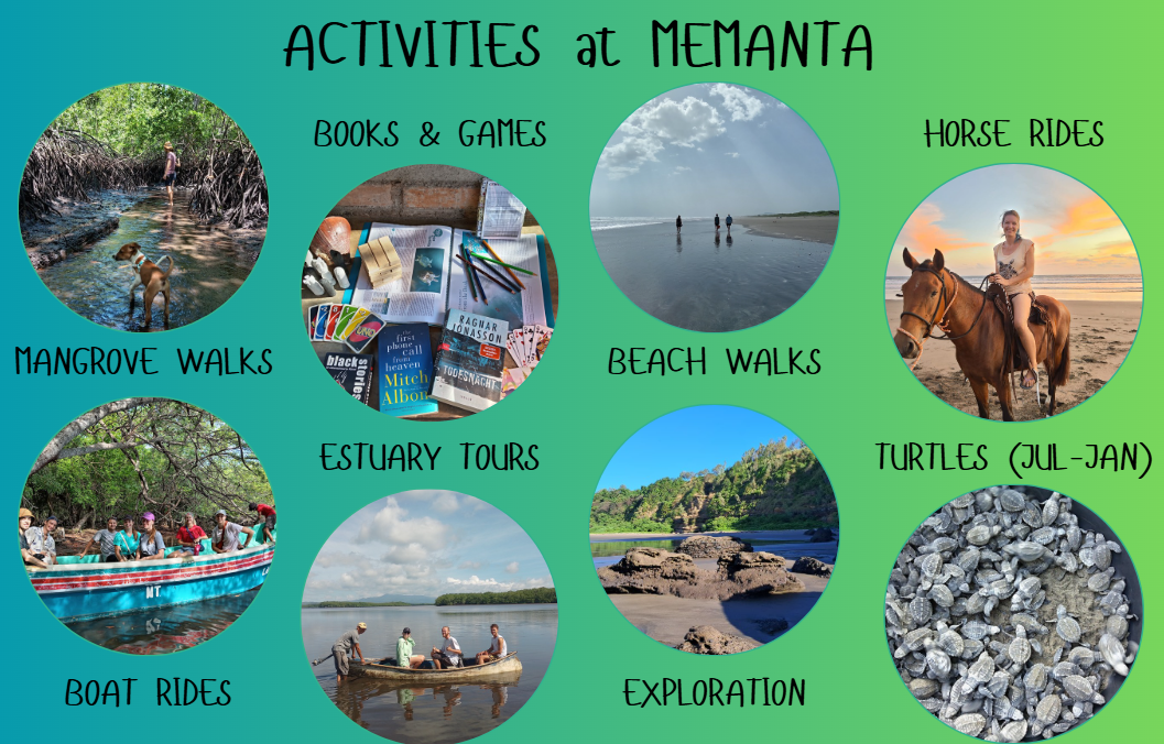 - cook your own meals in a well-equipped kitchen or receive a Nica-style dinner